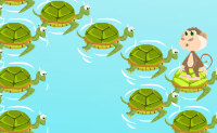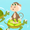 Jump on the turtles to sink them and score points.
